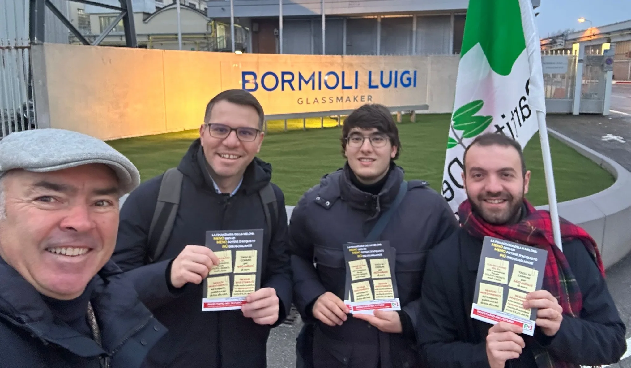 “Ieri mattina la nostra protesta contro la Legge di Bilancio si è spostata davanti ai cancelli della Bormioli, in Viale Europa, per parlare anche con i dipendenti e gli operai dello stabilimento.”