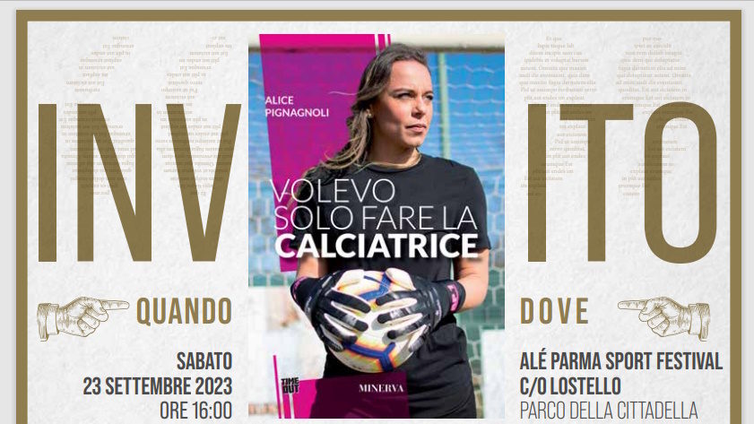 Sabato 23 settembre 2023, con inizio alle ore 16.00, a “Lostello”, nel Parco della Cittadella di Parma, presentazione del libro “Volevo solo fare la calciatrice” di Alice Pignagnoli, che dialogherà con il giornalista professionista Gabriele Majo, moderatore dell’incontro.