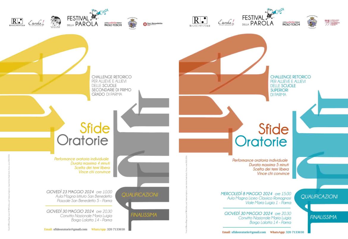 È da qui che parte la scommessa di questo challenge retorico, che vedrà una fase eliminatoria per gli studenti e le studentesse delle scuole secondarie di secondo grado mercoledì 8 maggio dalle ore 15 nell’Aula Magna del Liceo Classico Gian Domenico Romagnosi di Parma. Le eliminatorie per gli alunni e le alunne delle scuole secondarie di primo grado della provincia si svolgeranno invece giovedì 23 maggio, dalle ore 10, nell’Aula Magna dell’Istituto San Benedetto.